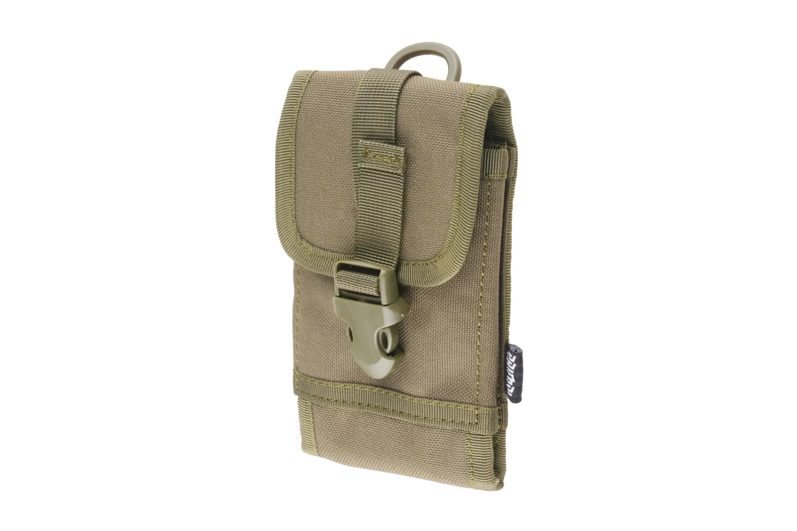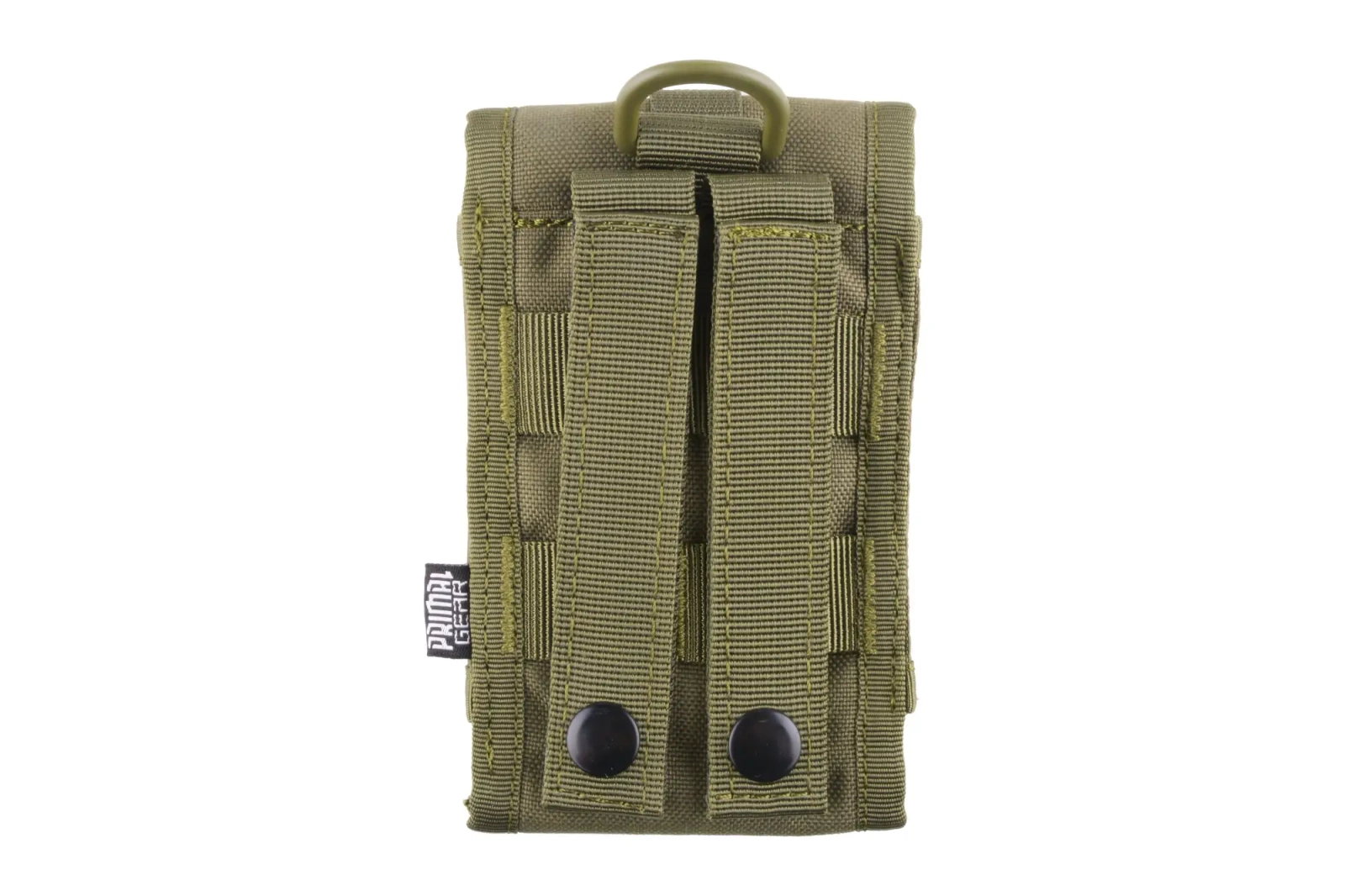 A pouch made of durable nylon by Primal Gear for a GPS device, a phone or accessories such as a multi-tool, a notebook or lightsticks. The pouch is lined with polyester that protects the contents from scratching. The implementation of a buckle instead of a hook and loop fastener allows for a quiet opening of the pouch without the risk of being detected.
