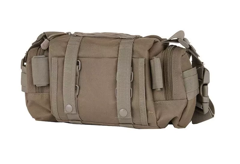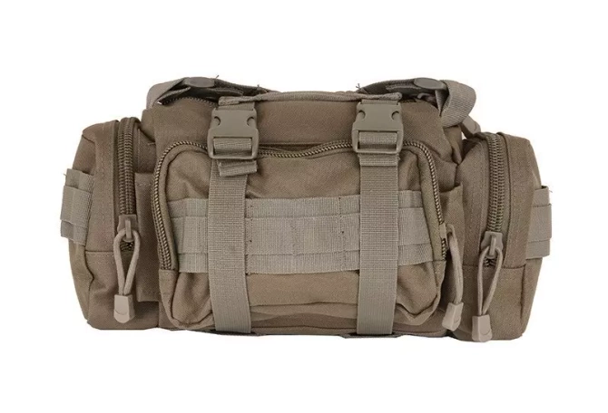 The bag is made of nylon fiber. Thanks to the large amount of dividers and pockets, it is possible to carry many tools and minor accessories. The bag can be mounted on the PALS webbing which meets the MOLLE standard, it can be worn on a waist belt or on the shoulder.