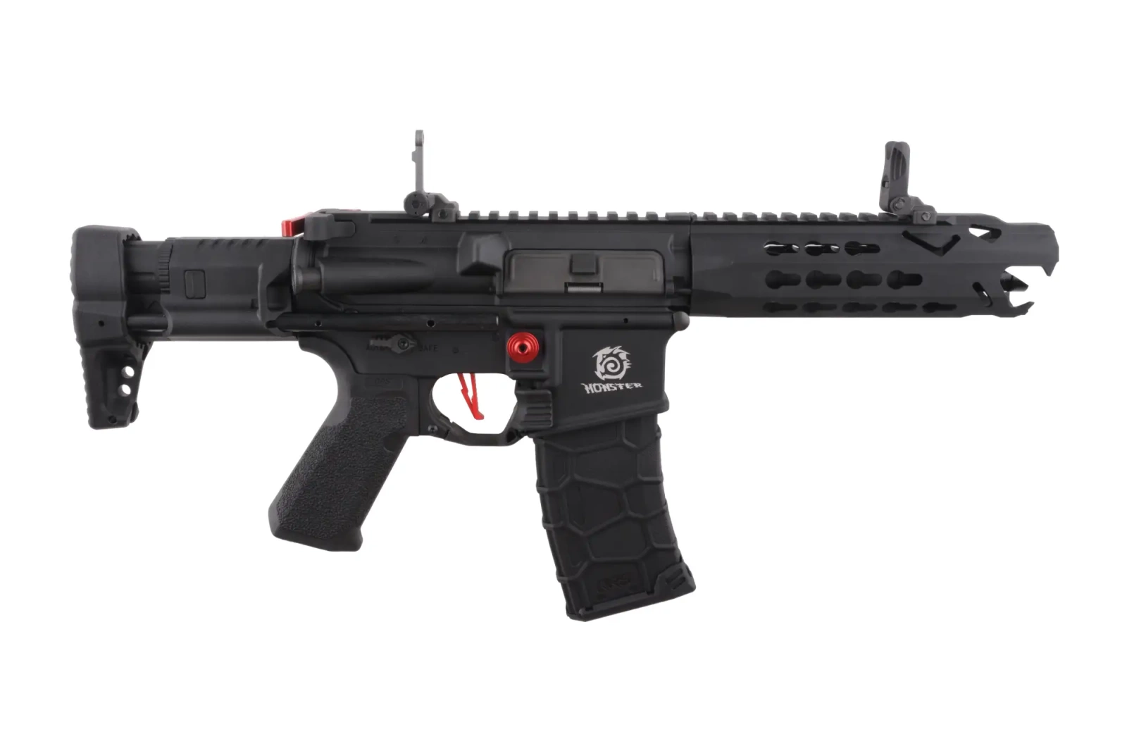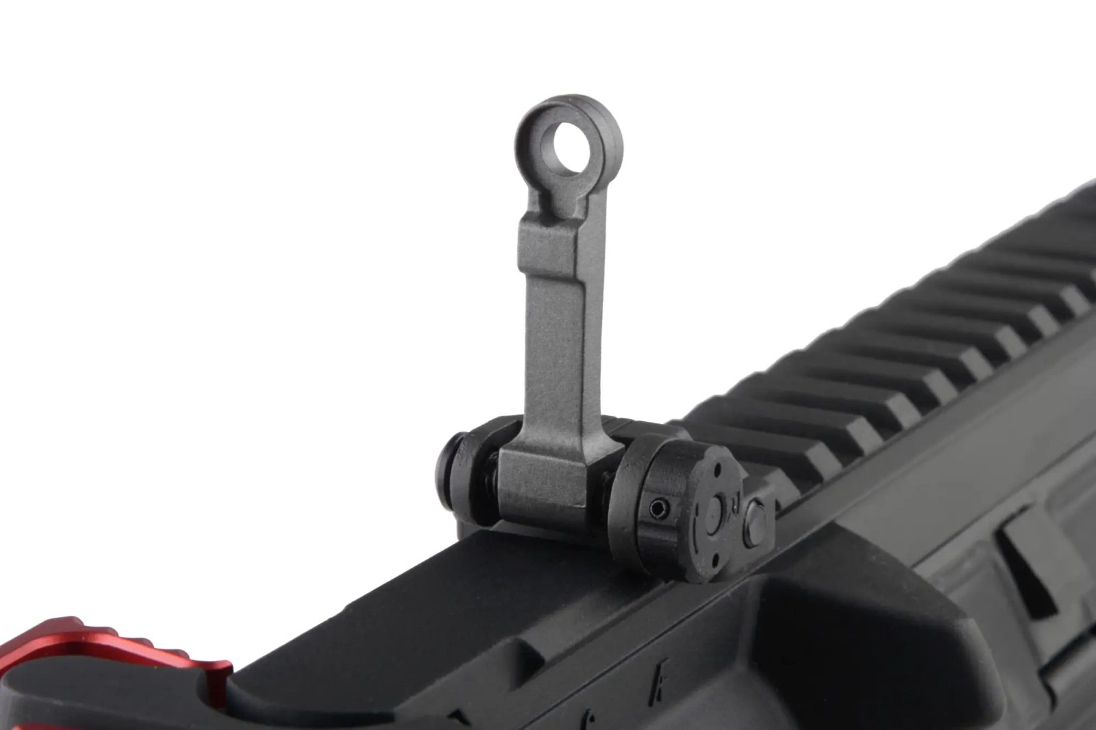 The replica features a long, top RIS 22 mm mounting rail and a modular KeyMod Monster Rail handguard. This allows to mount a wide array of additional attachments on the replica, starting with optical sights, through grips and tactical lighting and ending up with laser sights.