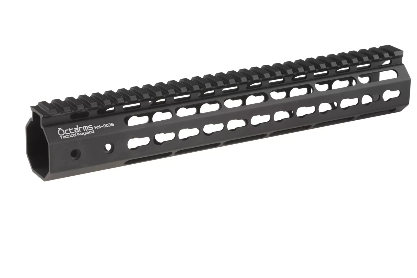 A 380mm KeyMod modular front grip made entirely of metal. Designed for mounting on M4 / M16 carbine replicas. There is a universal RIS 22mm mounting rail on the top of the grip.