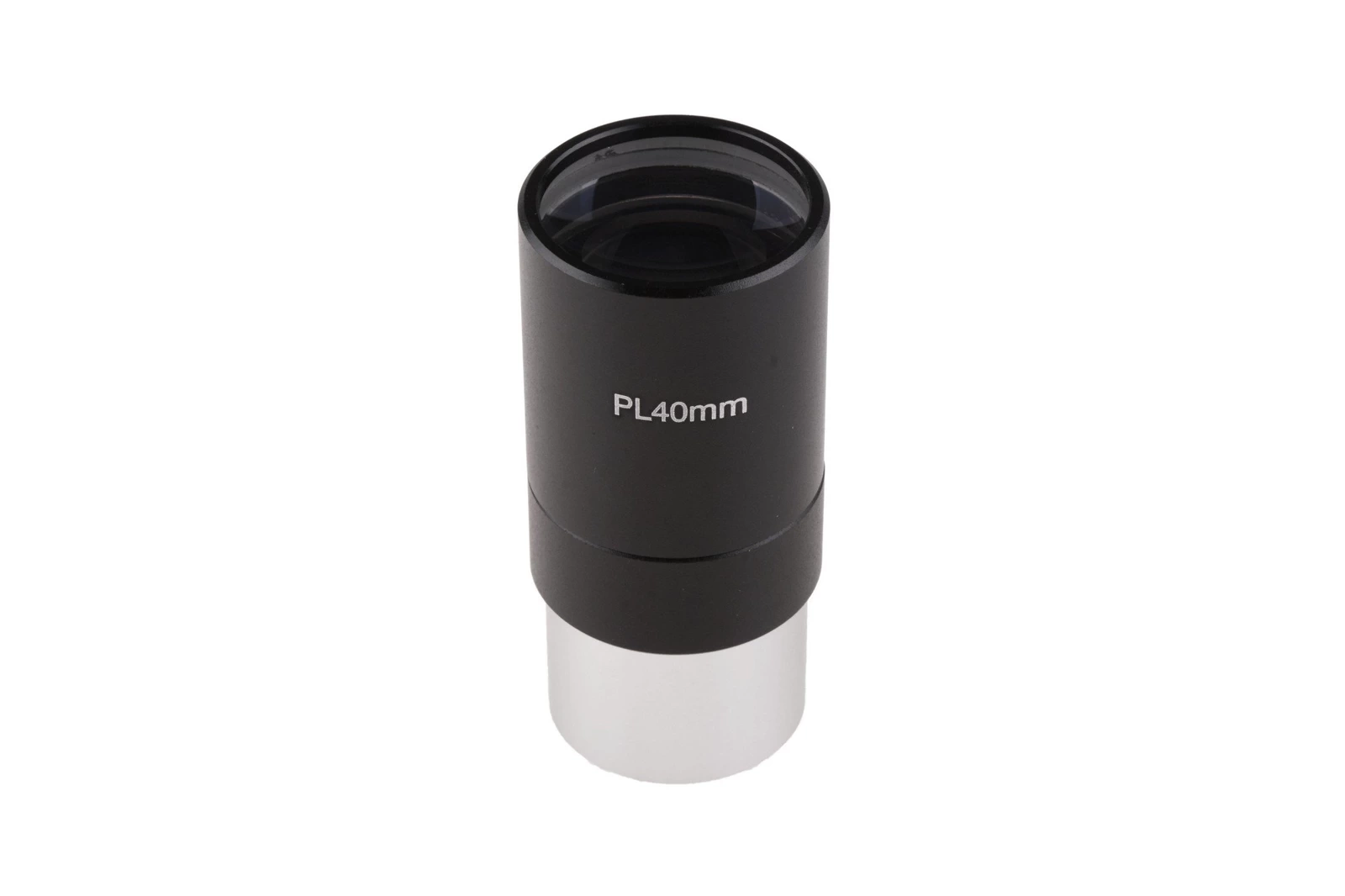 A Plossl eyepiece made of metal and polymer with a focal length of 40 mm. Features a standard 1.25 mm frame diameter, which makes it compatible with a majority of microscopes.