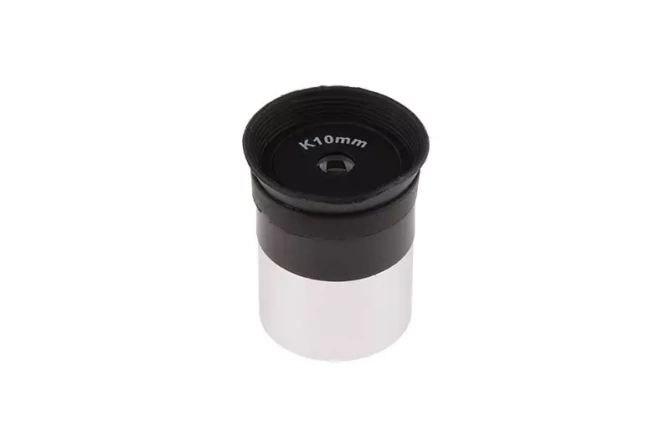 A Kellner eyepiece made of metal and polymer with a focal length of 10 mm. Features a standard 1.25 mm frame diameter, which makes it compatible with a majority of microscopes.