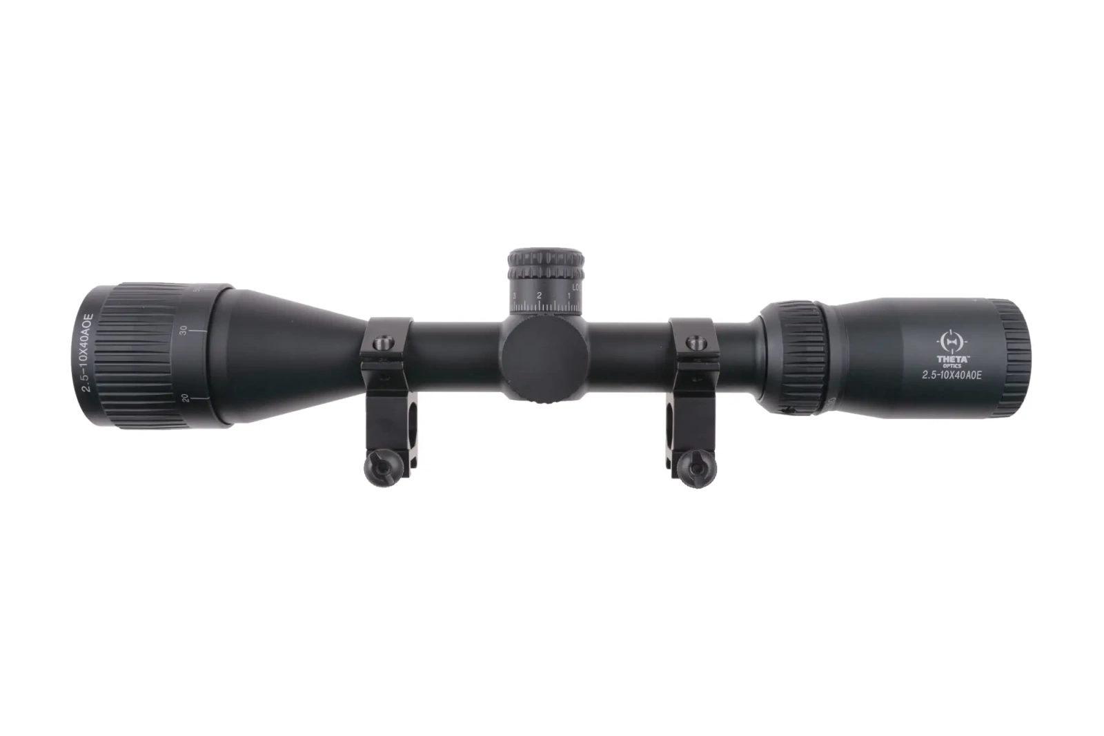 A scope by Theta Optics™ is a guarantee of high quality and a reasonable price. Enclosed in a durable, metal casing, vivid optics with a Mil-Dot reticle as well as an adjustable magnification. Thanks to illuminated crosshairs (red, blue or green) the scope can be easily used for operations during the day as well as the night. Powered by a single CR2032 battery. The reticle can be smoothly adjusted both vertically and horizontally. The product is attached on a standard RIS 22 mm rail.