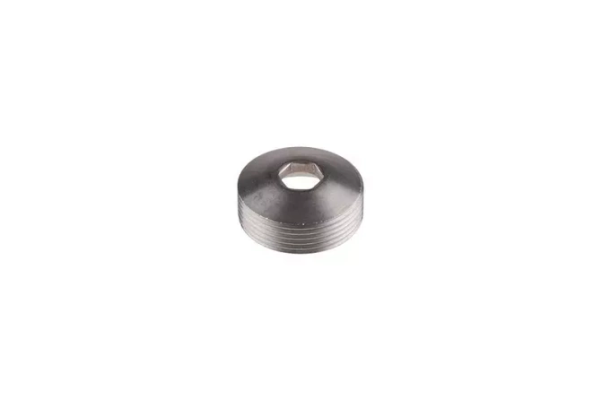 A steel cap for CO2 magazines in WE G Series pistol replicas.