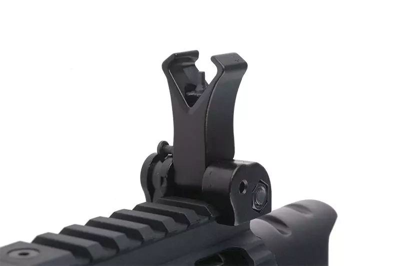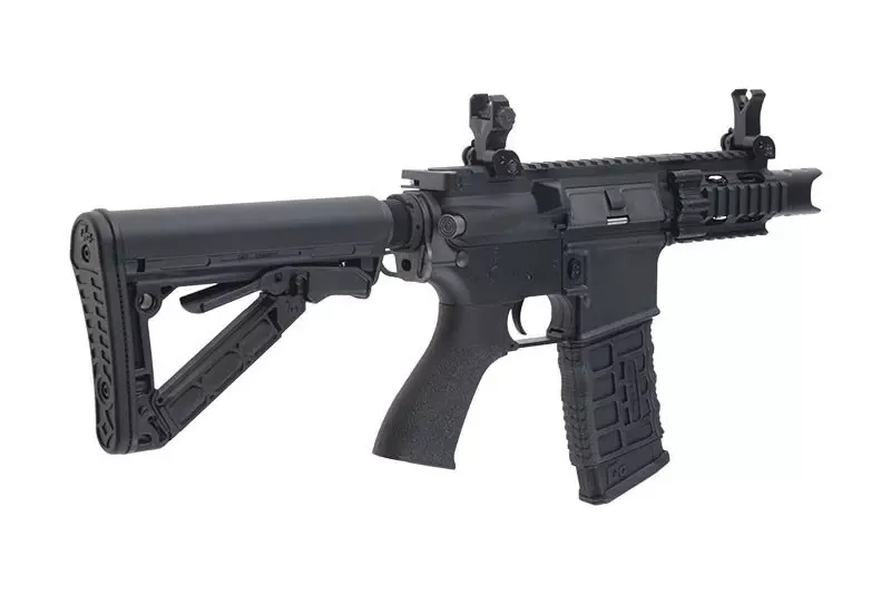 The replica also features a GOS-V2 type telescopic stock with an integrated compartment and QD tactical sling swivels. The stock is adjustable, which allows for the customization of the replica’s length to the body type and preferences of the User. The set includes a kit of flip-up iron sights.