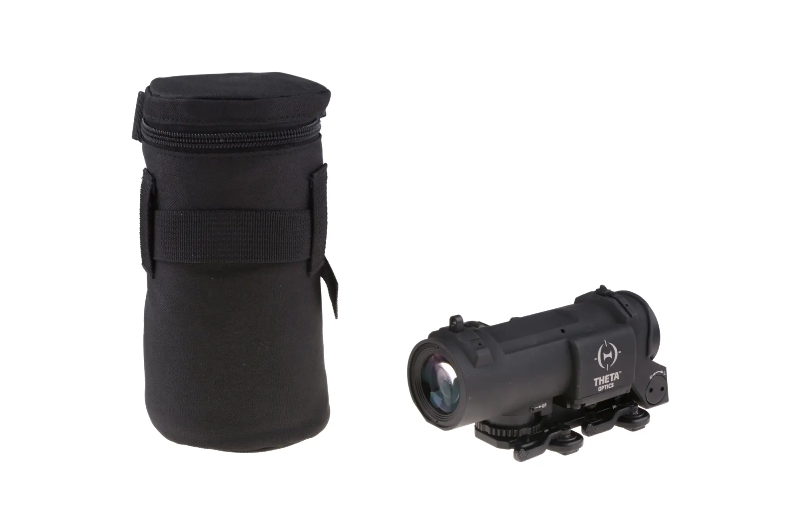 The scope’s position can be adjusted both vertically and horizontally. The vertical position is regulated using a comfortable, large knob under the scope. A flat-blade screwdriver is required for the adjustment of scope’s vertical position. The mount is dedicated for a RIS 22 mm mounting rail with QD system. The replica comes with a nylon case. The case can be fastened to a belt.