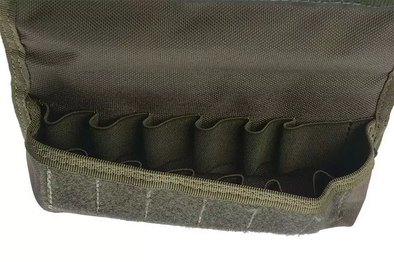 The pouch can hold 12 shotgun shells. Thanks to the usage of elastic bands, shells are kept surely in place and taking them out is lightning fast. Classic MOLLE webbing enables the attachment to a majority of tactical equipment. Hook and loop fastener flaps additional prevent shells from falling out or from getting dirty.
