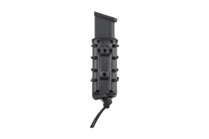 A pouch made of durable polymer by Primal Gear, dedicated for pistol magazines. It does not feature a flap, which allows for a rapid access to a magazine whilst at the same time holding it surely in place and not allowing for accidental falling out, even when mounted upside down. This is facilitated by the pouch’s construction - it consists of two halves, tightly kept together with elastic cords that can be regulated.
