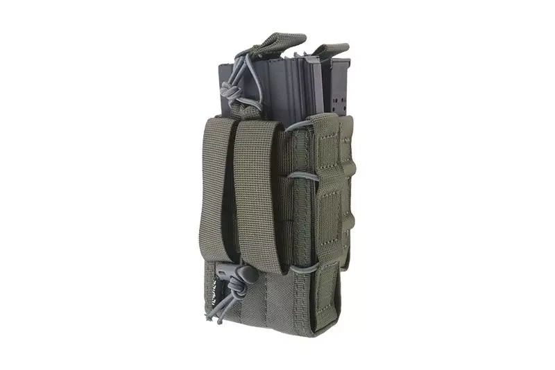 A double, universal shingle type pouch made of durable nylon by Primal Gear for two carbine and pistol magazines, which thanks to its adjustable volume, can hold AK / M4 / G36 / M14 / SR25 type magazines and many others. The magazine is secured with an elastic shock-cord, which prevents it from falling out.