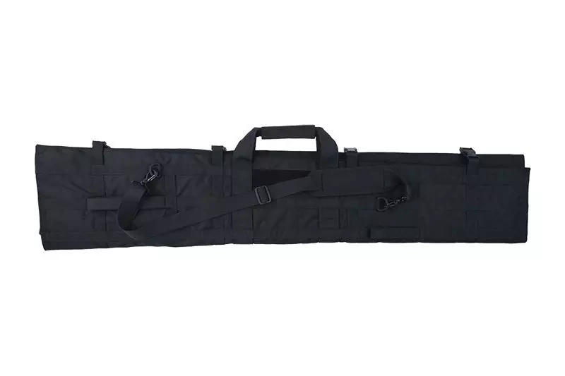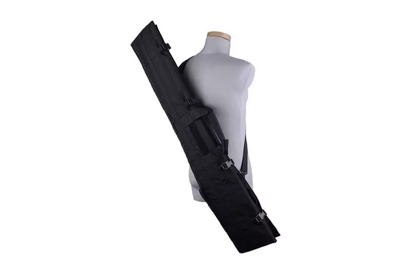 A gun bag made from nylon. The fastener consists of 4 buckles. Once undone and the bag is opened, the User gains access to a surface 780 mm wide. Inside there are mounts for securing of the gun and two removable pockets measuring 380 x 160 mm (one with elastic drawstrings for ammunition and another one for accessories).