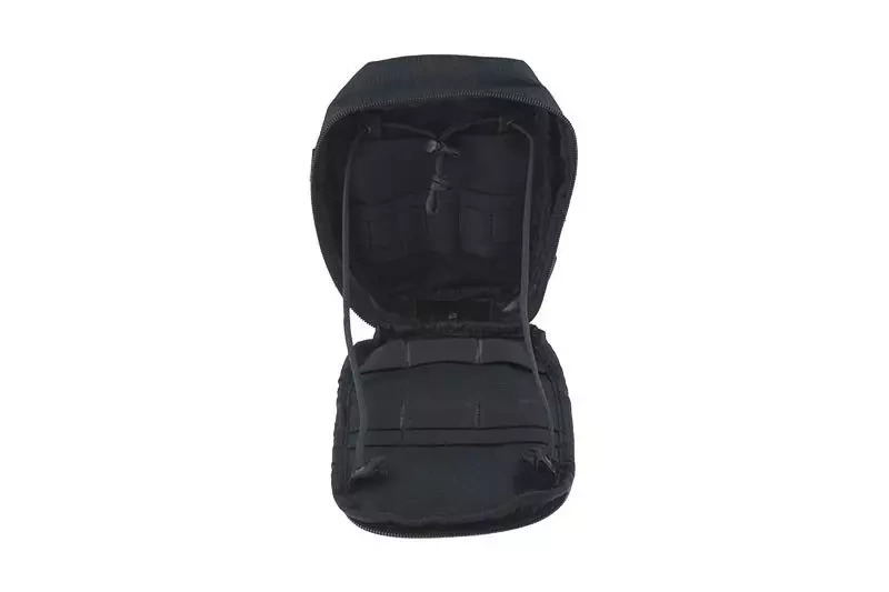 A cargo pouch for accessories made of durable nylon. The main compartment features a double zipper. Inside is a flat pocket and stretchy bands that enables the storing of chemical lights, a pen or a flashlight. The pouch’s flap opening can be adjusted using a string with a stopper. The front wall of the pouch features a flat pocket with a zipper, a hook and loop fastener and two rows of MOLLE webbing.