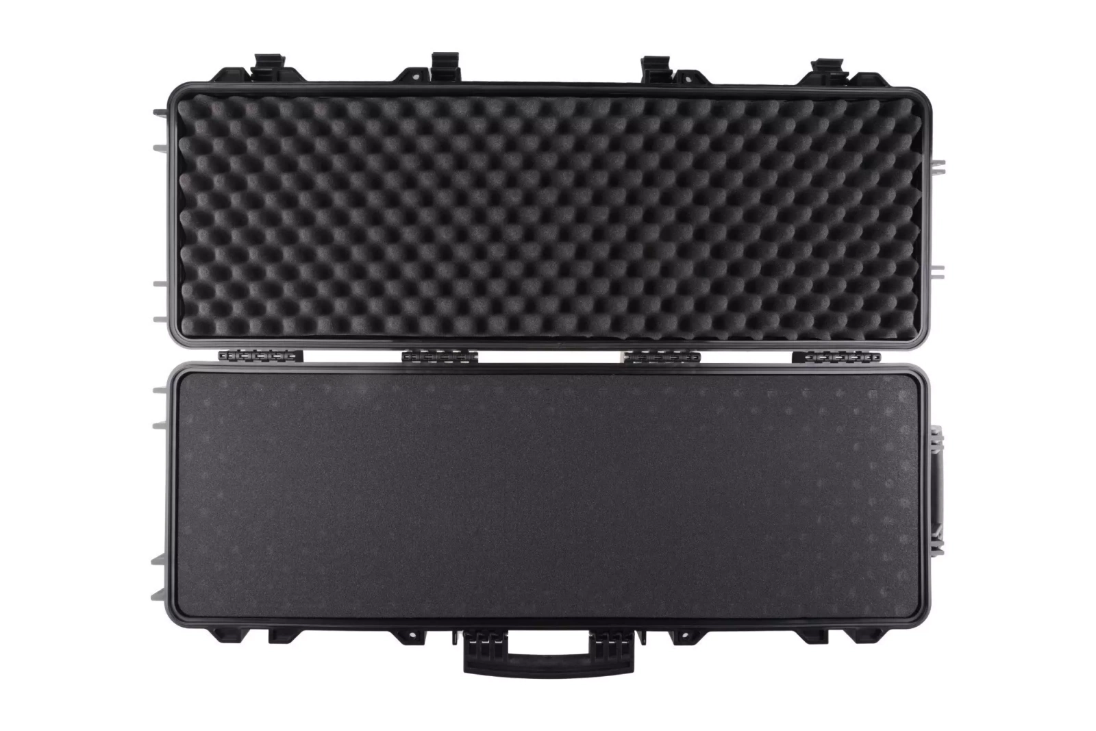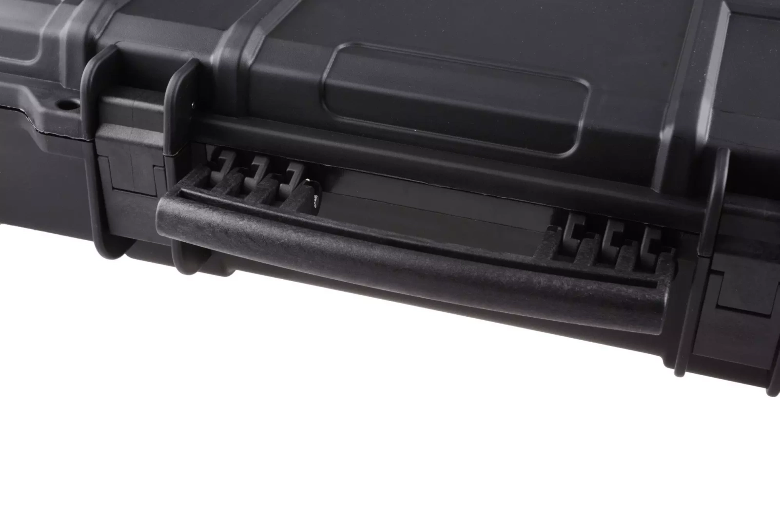 A transport case made of durable polymer measuring 1100 × 390 × 150 mm that allows for a safe transport of a weapon up to 1000 mm in length.