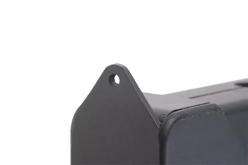 G12 submachine gun replica made of metal elements and polymer. Metal parts include the external barrel, upper receiver, stock, magazine as well as all mobile and internal elements. Parts made of ABS include the lower receiver along with the pistol grip that also serves as a magazine well.
