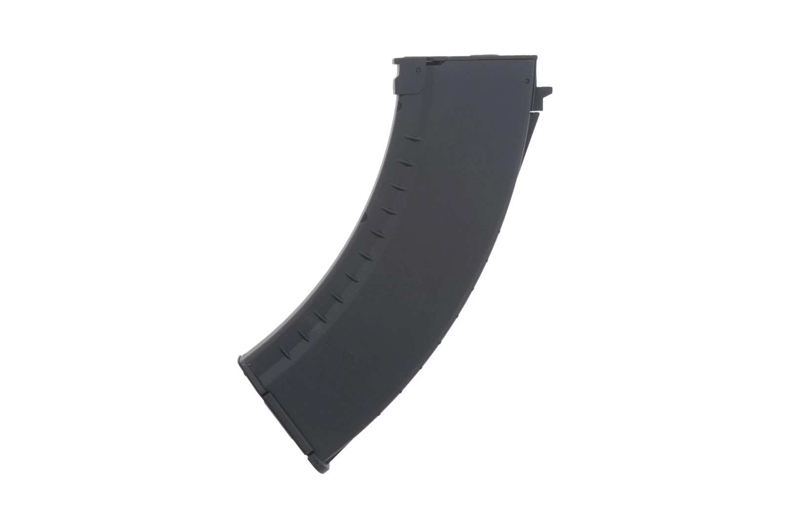 A Hi-Cap magazine made of polymer with a capacity of up to 500 BBs. Intended for AK replicas. The magazine is loaded through the feeding hole or wound up using the string located in the magazine base.
