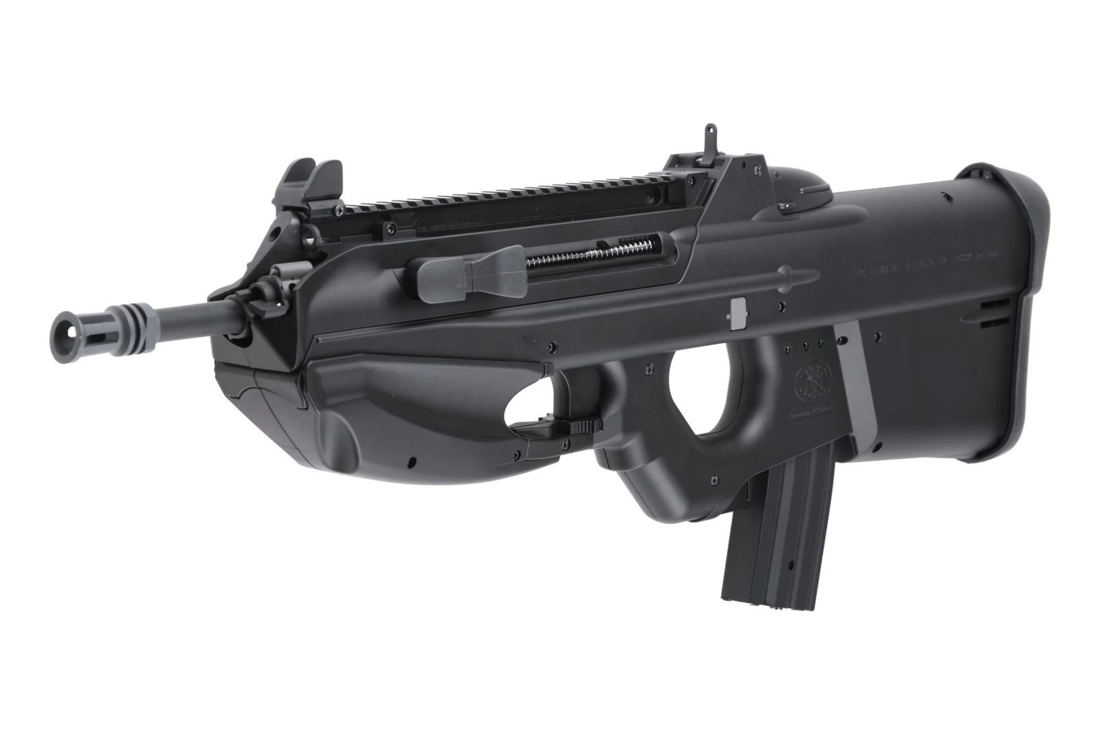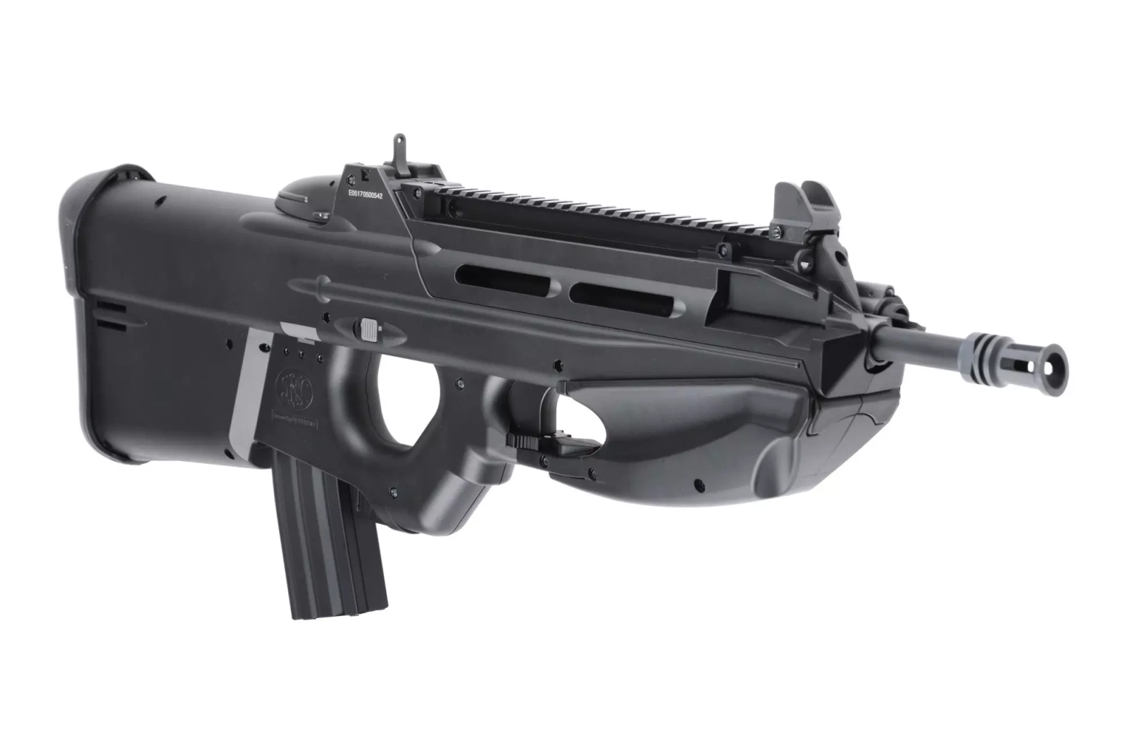 FN F2000 bullpup assault rifle replica based on the live firearm by FN Herstal. The replica, similarly to the live firearm original, was made mostly of polymer. Metal elements and parts are of course present here as well - the magazine, RIS rail, barrel or the muzzle device. The receiver of the replica was made of high-quality polymer. Despite the use of polymer, the replica is very well aligned, nothing squeaks and there are no loose spots. The replica weights over 3 kg, which can be felt. Thanks to a full license from the Belgian FN Herstal manufacturer, one can feast one’s eyes with a set of original markings, which were engraved on the replica.