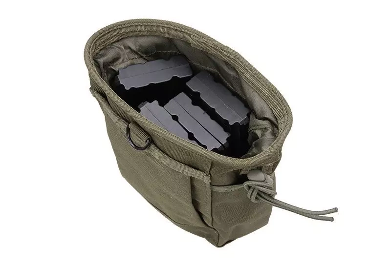 A small dump pouch for empty magazines. Dump pouches greatly increase the time needed to exchange magazines in the replica. Furthermore, application of such pouches eliminates the need to insert the empty magazine into the chest pouch, thus prevents the confusion between full and empty magazines.