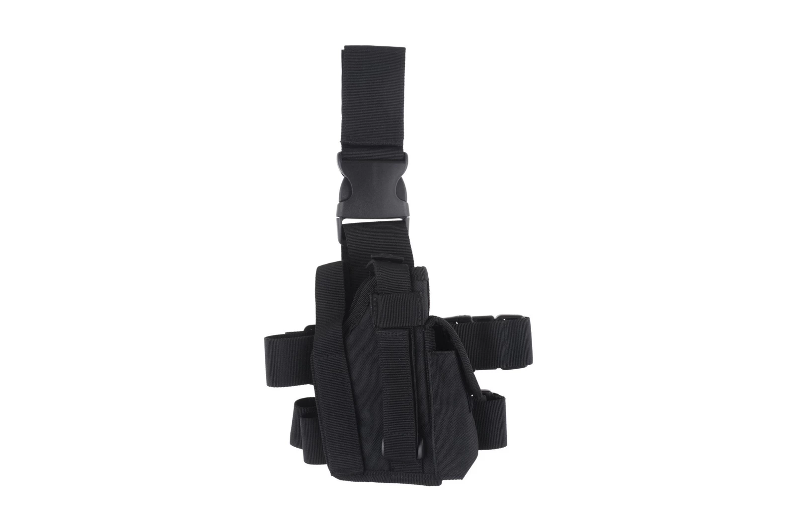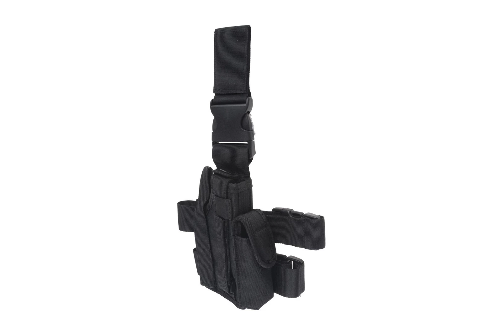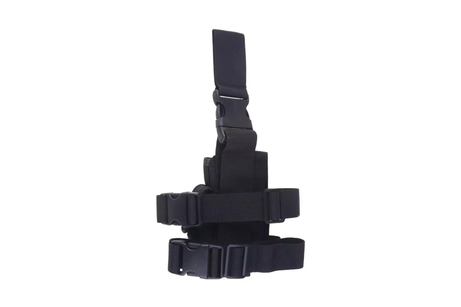 The holster is made from nylon. Thanks to the implementation of hook and loop fasteners it is possible to adjust and adapt the holster to a given pistol. The holster has universal use. Adjustable thigh straps feature buckles. It is also possible to completely detach the straps, depending on the User’s needs. The mounting strap used for the attachment to a belt also features a buckle that enables a quick release from the belt. The top of the holster features a magazine pouch.