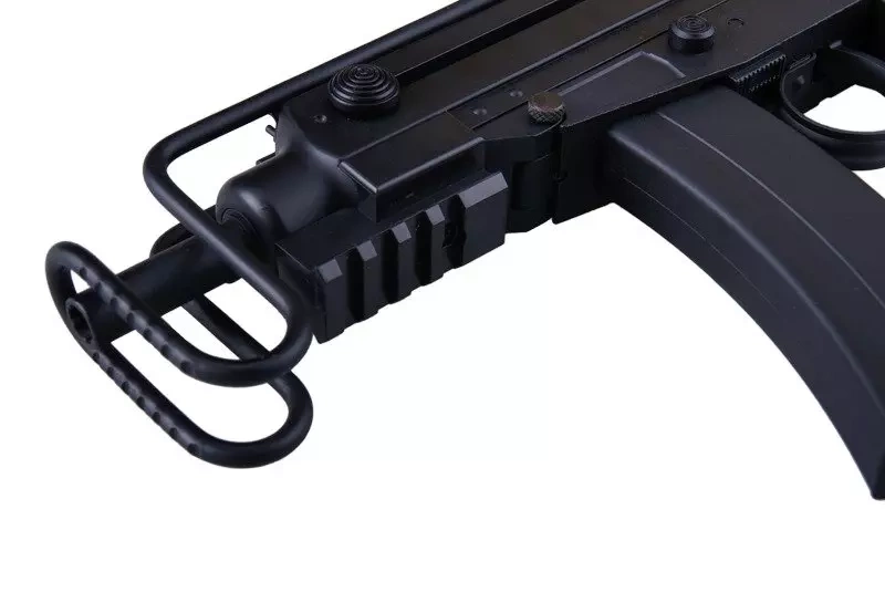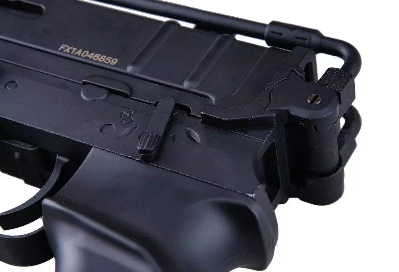 The airsoft gun is made of metal, ABS and steel elements. The folding stock, the magazine and several small elements are made of metal. The specially designed gearbox, which is mounted inside the gun, is powered from a battery fitted in the hand grip. The airsoft gun has single and automatic fire mode.