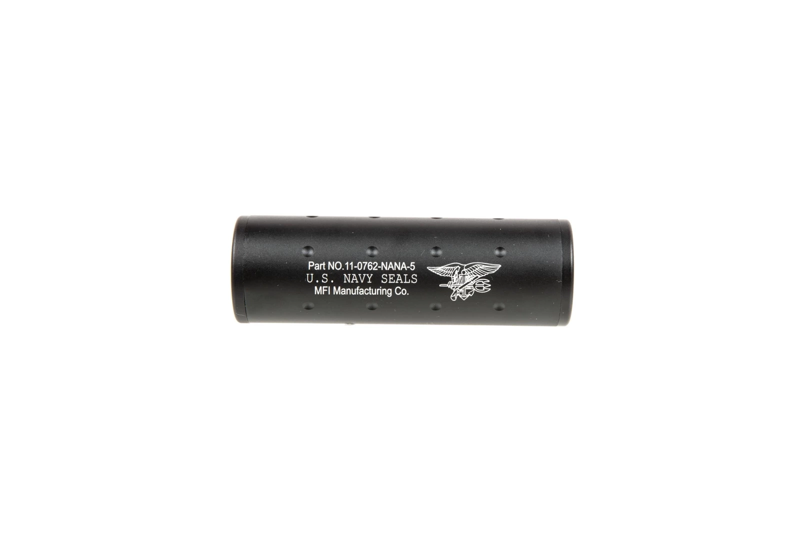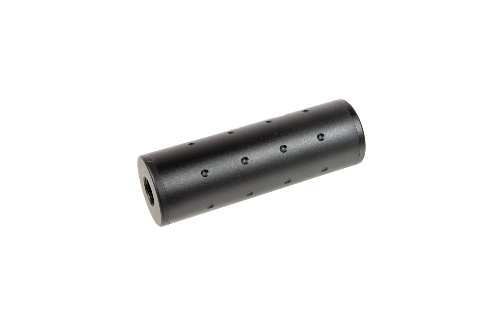 An aluminum silencer equipped with a 14 mm CCW thread. The silencer is 100 mm long.