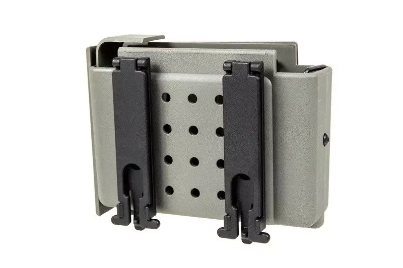 Ładownica mieści 4 magazynki pistoletowe, które są dosyłane do przodu przez podajnik, dzięki czemu nowy magazynek zawsze znajduje się w tym samym miejscu. Montaż systemu MOLLE pozwala na zastosowanie ładownicy na każdym wyposażeniu taktycznym w tym standardzie - istnieje również możliwość zamocowania na pasie.