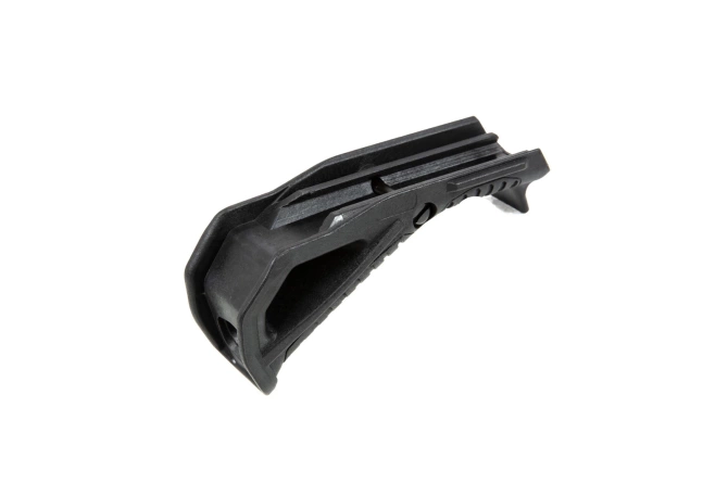 Wykonany w tworzywa sztucznego, ergonomicznie wyprofilowany, przedni chwyt kątowy przeznaczony do montażu na szynach montażowych RIS 22mm.