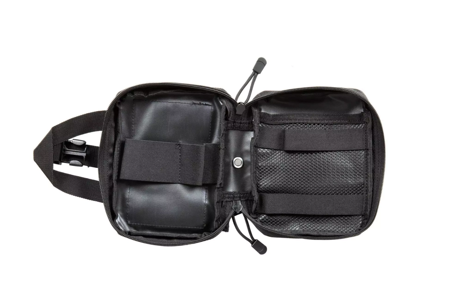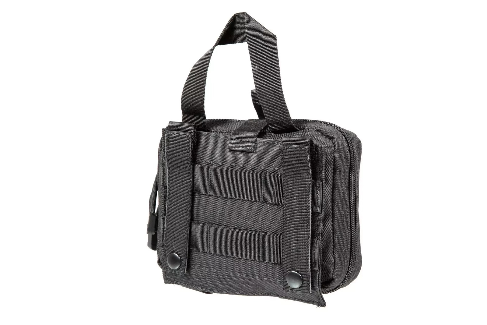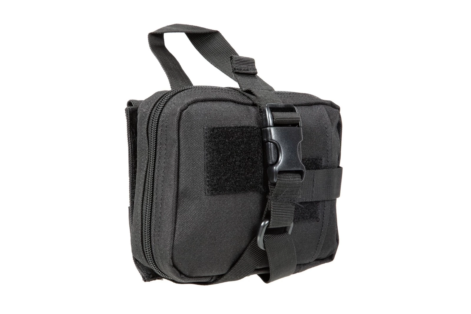 Zrywana apteczka marki GFC Tactical wykonana z wytrzymałego nylonu. Produkt dedykowany do mocowania do oporządzenia zgodnego z systemem MOLLE. Apteczka posiada taśmę z klamrą, która zabezpiecza przed przypadkowym odczepieniem. Apteczka ma przyszyte dwa małe panele rzepowe umożliwiające przyczepienie np. naszywki krzyża medycznego. Komora główna ładownicy zamykana jest przy pomocy zamka błyskawicznego, w środku której znajdziemy funkcjonalny organizer w postaci kieszeni siatkowej i taśm elastycznych.