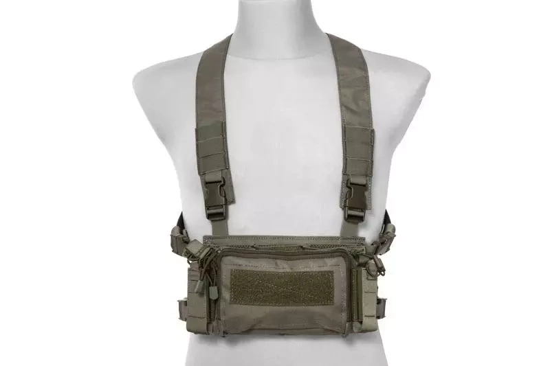 Lekka i funkcjonalna kamizelka taktyczna typu chest rig. W panelu znajdują się 3 ładownice na magazynki typu AR15/AK i specjalne wkładki stabilizujace magazynki i zapobiegające ich wypadaniu nawet w dynamicznych sytuacjach. Przed ładownicami znajduje się płaska kieszeń zamykana przy pomocy zamka błyskawicznego wyposażona w panel rzepowy i elastyczne taśmy które przytrzymają drobne wyposażenie. Po bokach kamizelki umieszczono dwie ładownice na magazynki pistoletowe lub akcesoria podobnych gabarytów. Pod ładownicami znajduje się płaska kieszeń, np. na dokumenty. Na przodzie oraz na tyle kamizelki naszyto panele rzepowe które pozwolą na doczepienie panelu do wyposażonej w rzep kamizelki.