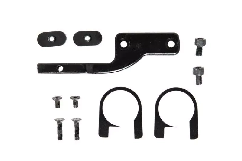 Wykonany z metalu montaż na latarki taktyczny lub wskaźniki laserowe o średnicy tubusa 0,83" i 1" (dwa pierścienie w zestawie). Montaż zamontować można na szynach montażowych systemu MLOK a także na polimerowych okładzinach lufy replik typu M4A1.