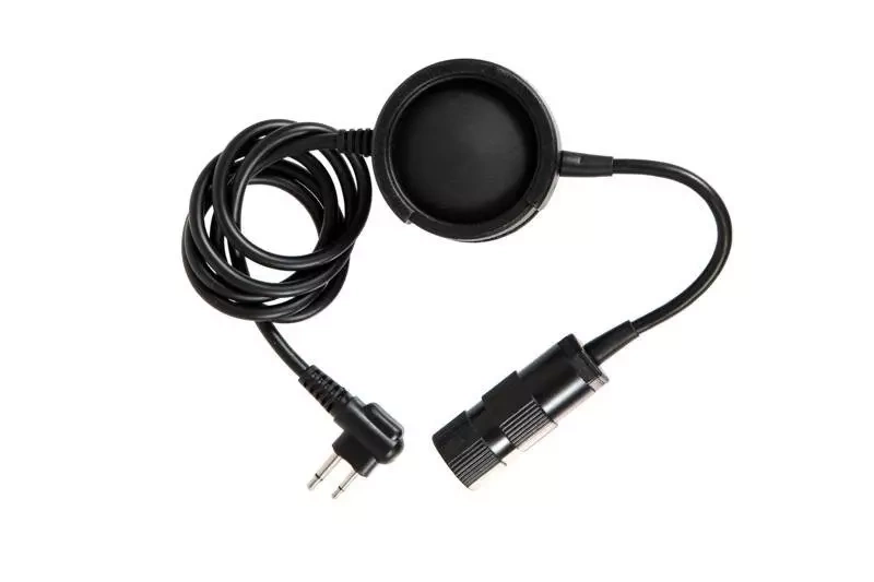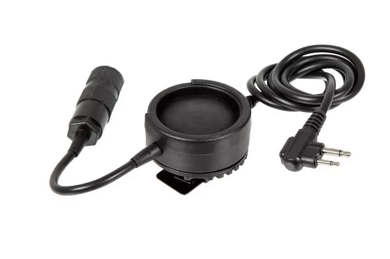 Przycisk PTT do zestawów słuchawkowych z wtykiem słuchawkowym typu Military. Przycisk mocowany jest do oporządzenia przez klips na rzep. Do jego produkcji użyto wzmacnianego tworzywa nylonowego, natomiast klips wykonany jest ze stali.