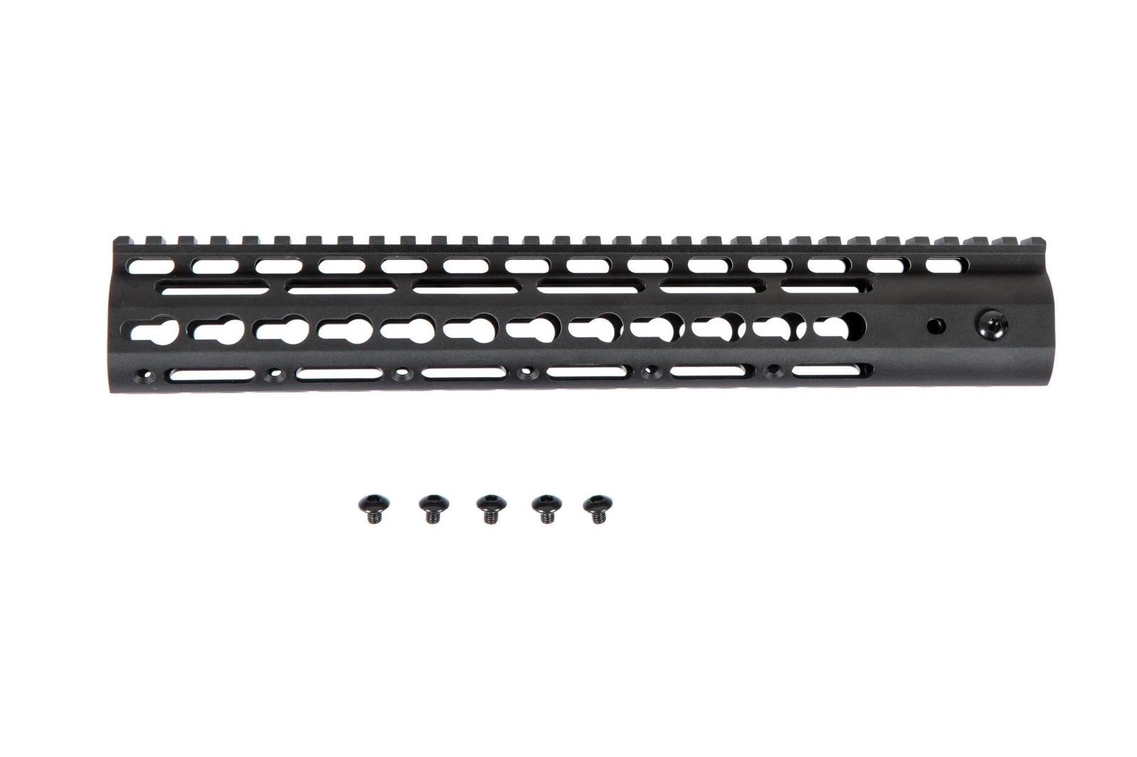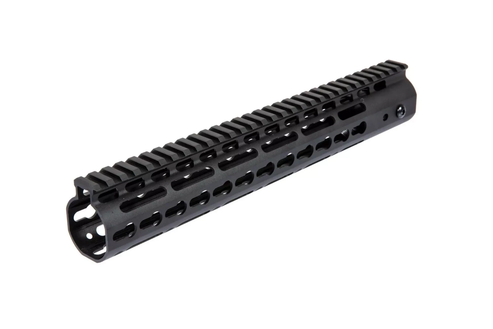 Wykonana z wysokiej jakości metalu frontowa szyna montażowa RIS z systemem montażowym KeyMod 12" o długości 305mm. Szyna przeznaczona jest do montażu w replikach typu M4/M16. W zestawie znajdują się wszystkie potrzebne do montażu śruby.