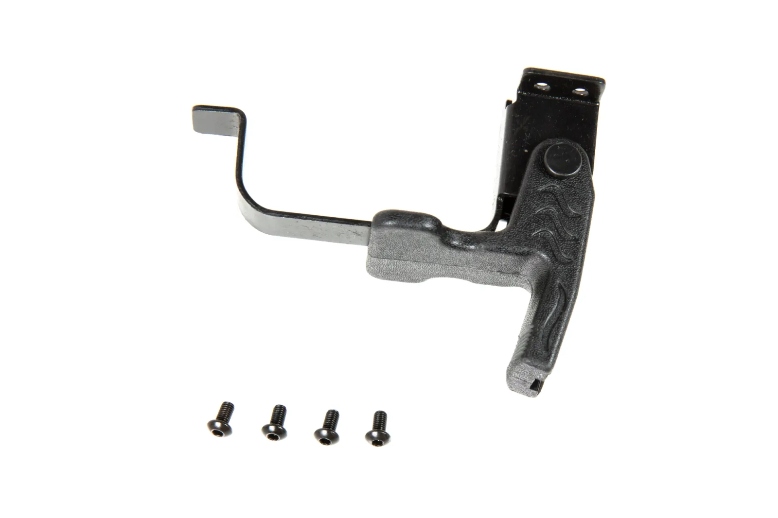 Wykonana ze stali oraz tworzywa sztucznego osłona spustu przeznaczona do montażu na replikach AK firmy LCT. Osłona wyposażona jest w powiększony zwalniacz magazynka co znacznie poprawi ergonomię użytkowania repliki i pozwoli na bardziej dynamiczną zmianę magazynków.