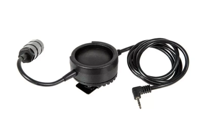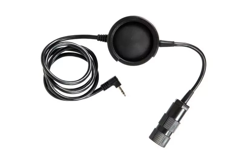 Przycisk PTT do zestawów słuchawkowych z wtykiem słuchawkowym typu Military. Przycisk mocowany jest do oporządzenia przez klips na rzep. Do jego produkcji użyto wzmacnianego tworzywa nylonowego, natomiast klips wykonany jest ze stali.