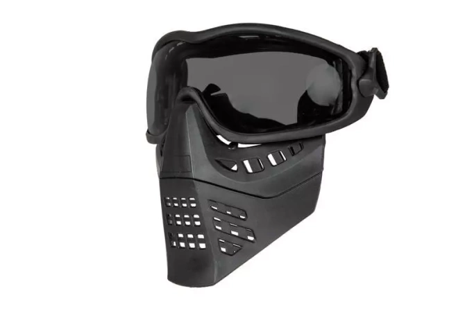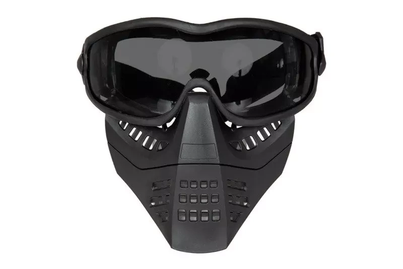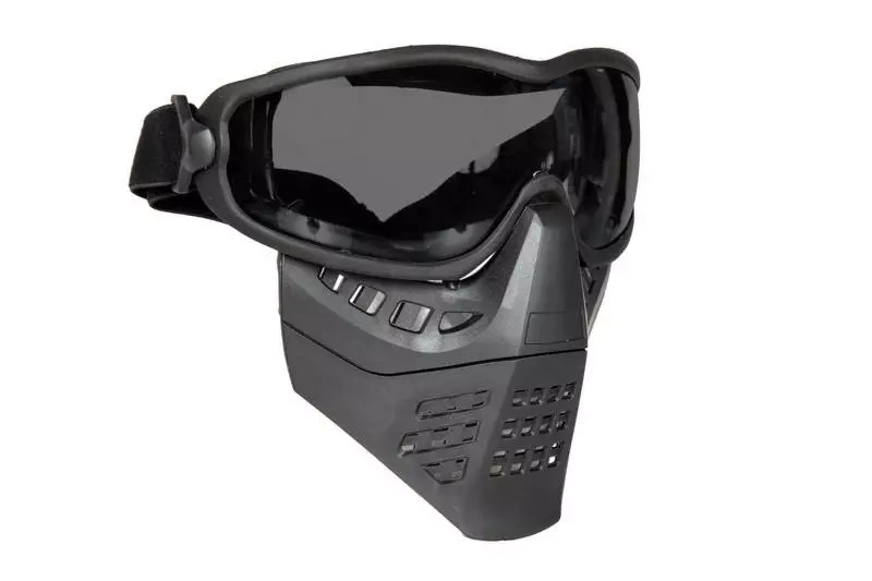 Maska wykonana jest z wytrzymałego, elastycznego tworzywa sztucznego. Jest ona połączeniem maski na nos oraz usta z goglami. Gogle posiadają otwory wentylacyjne ułatwiające odprowadzanie wilgoci, dzięki czemu niwelowane jest parowanie. Elastyczna osłona ust i nosa również posiadają otwory wentylacyjne. Szeroki elastyczny pasek posiada regulację długości.