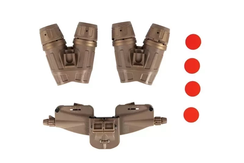 Atrapa noktowizora AN/AVS10 posiadająca adapter, za pomocą którego możemy zamontować zestaw na hełmie. Obie pary okularów są umieszczone na modułowym montażu, dzięki czemu są ruchome i możemy je regulować.