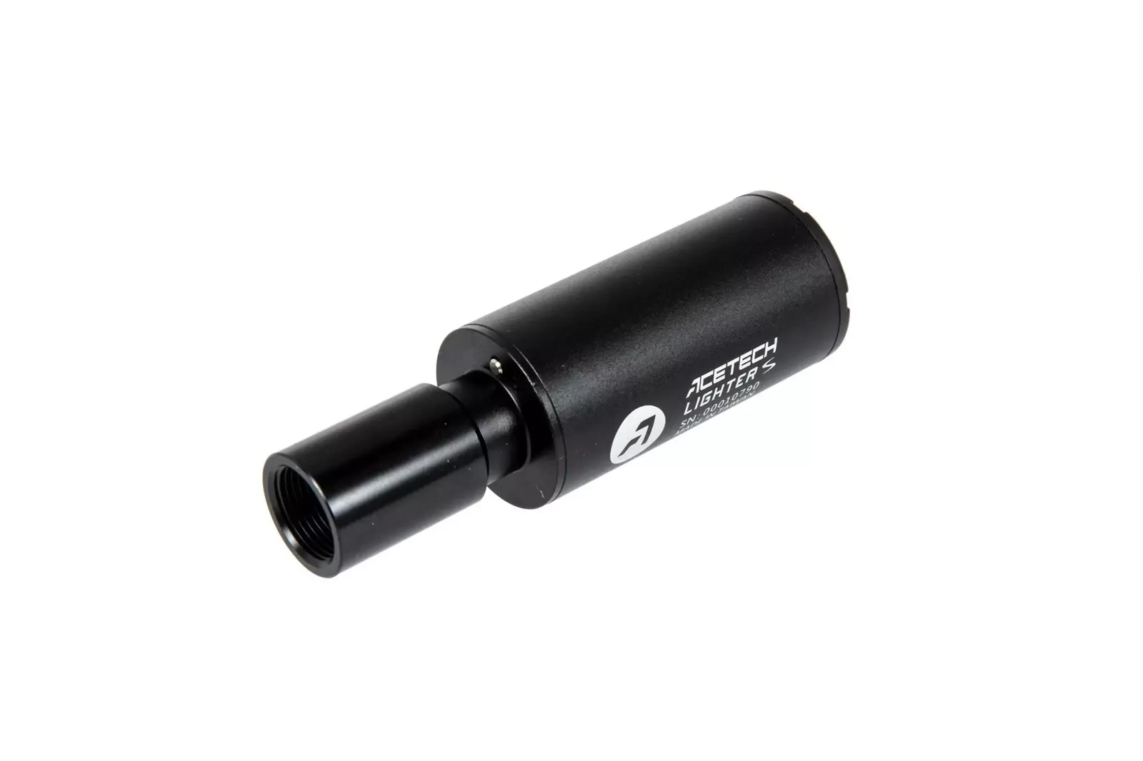 Wykonany z wytrzymałego aluminium i tworzywa sztucznego wysokiej jakości Tracer w formie tłumika dźwięku. Tłumik może naświetlić maksymalnie 35 kulek/sekundę, pełne naładowanie urządzenia pozwoli naświetlić w sumie aż do 22000 kulek. Tłumik posiada wskaźnik naładowania baterii.
