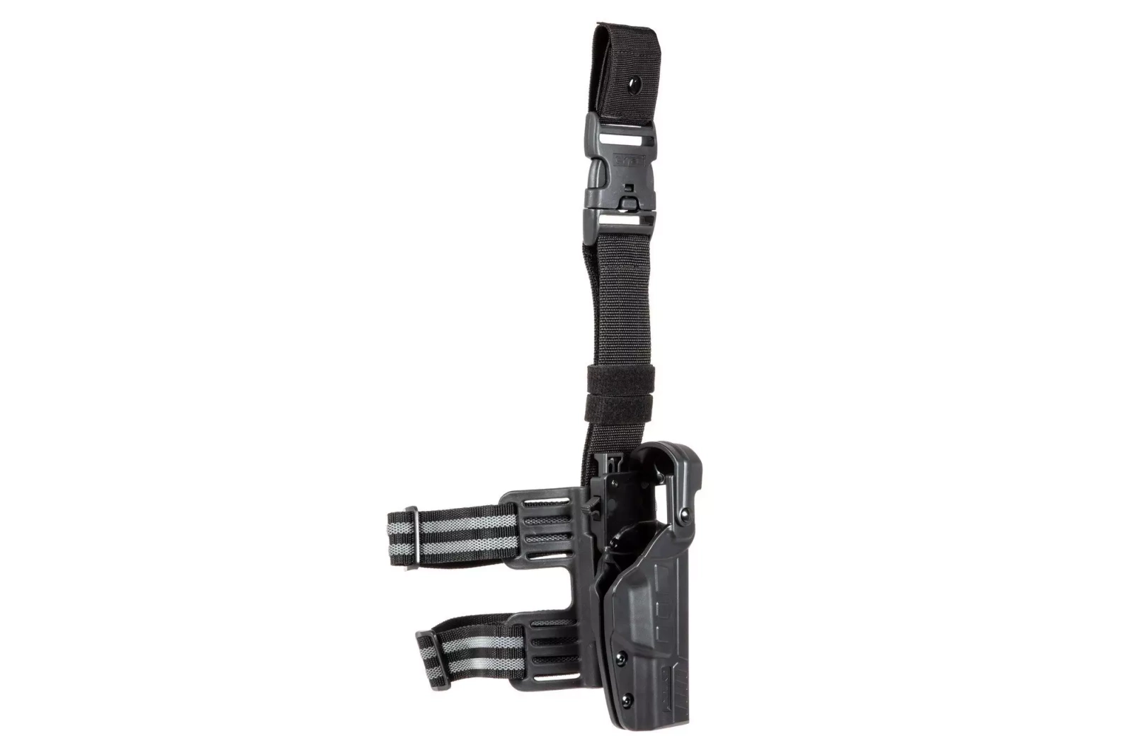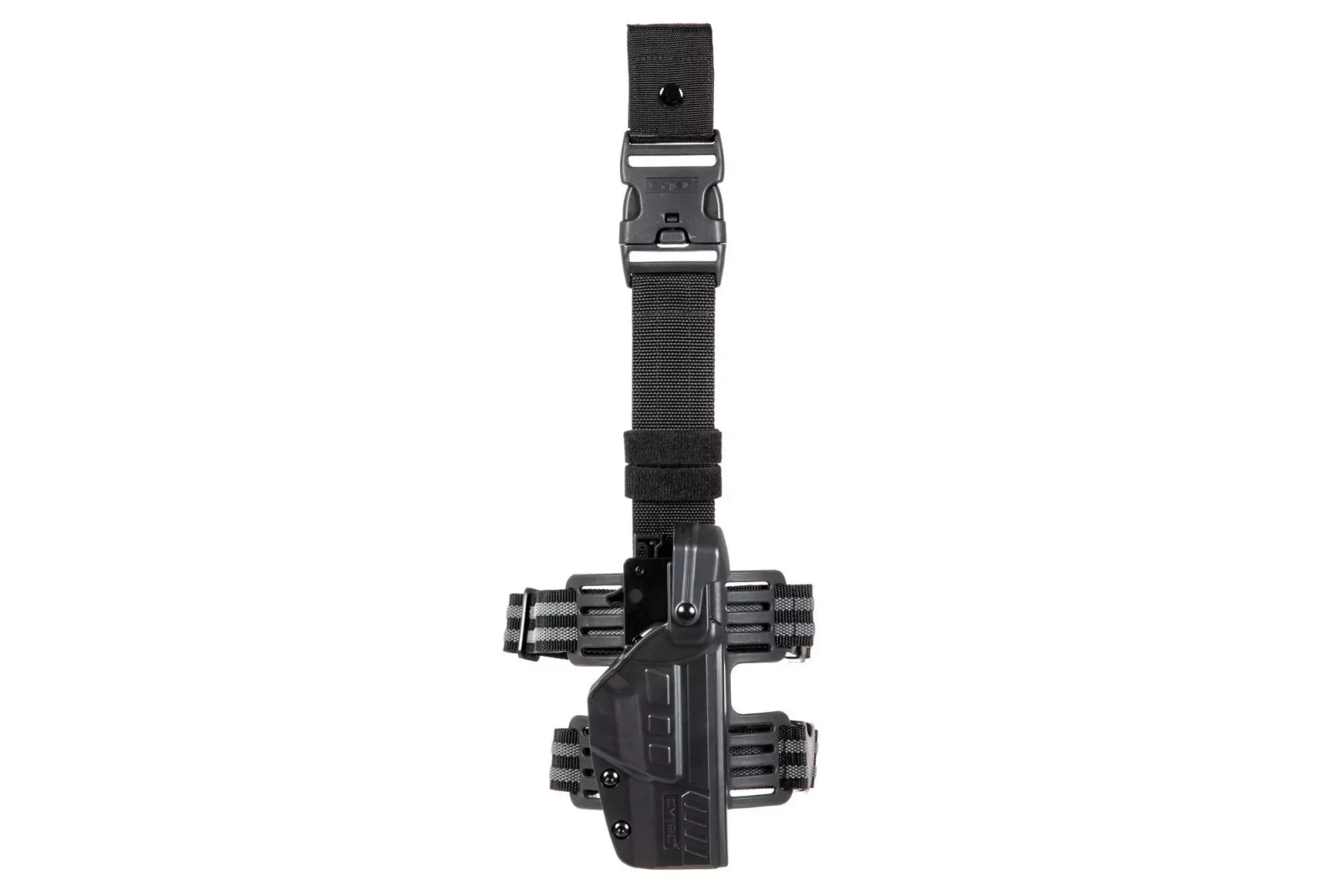 Wykonana z tworzywa przez firmę Cytac kabura udowa Przeznaczona do przenoszenia pistoletów Glock 17. Kaburę wykonano z wytrzymałego polimeru i oparto na wygodnym panelu udowym wyposażonym w 2 pasy podtrzymujące z klamrami do szybkiego wypięcia oraz montażem do pasa. Montaż ten także wyposażono w klamrę.