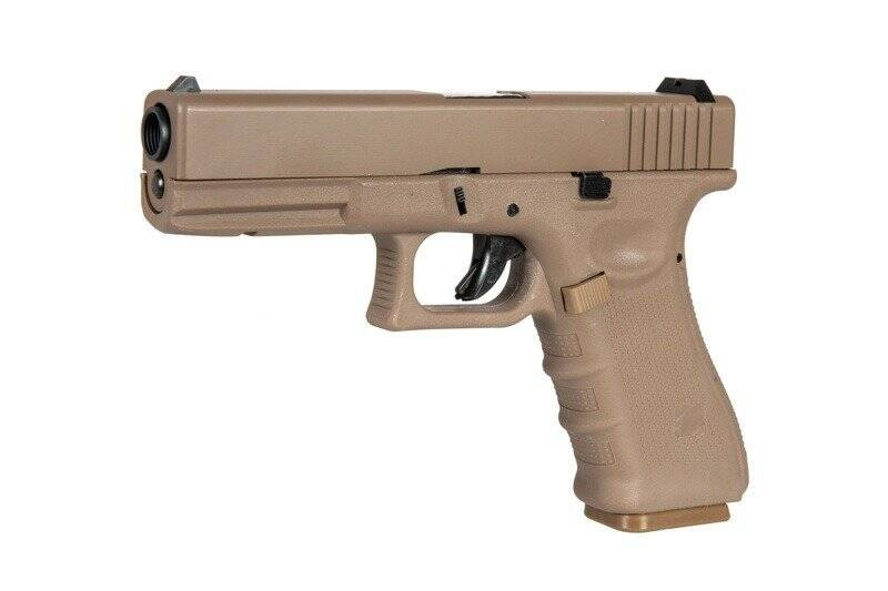 Zbiornik gazowy znajduje się w magazynku mieszczącym 24 kulki. Replika posiada system Blow Back, znacznie zwiększający realizm użytkowania repliki podczas oddawania strzałów poprzez każdorazowe cofnięcie zamka, tak samo jak wersji palnej. Po wystrzeleniu ostatniego pocisku pozostaje on w tylnym położeniu. W zestawie znajdują się części które pozwolą przystosować replikę do zasilania gazem CO2 (sprężyna powrotna, komora) oraz zestaw uszczelek.