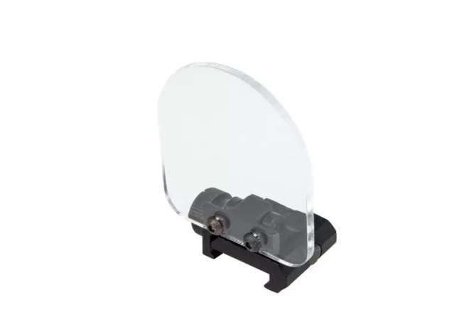 Osłona przeznaczona jest do mocowania na dowolnej szynie RIS 22mm. Produkt został wykonany z wytrzymałego tworzywa sztucznego (szybka ochronna) i z metalu (podstawa). Szybka przykręcamy do podstawy przy pomocy 2 śrub. Osłonę wyposażono w system Flip-Up pozwalający na jej "położenie" w momencie, w którym nie jest potrzebna. W skład zestawu wchodzą też 2 szybki: przeźroczysta i żółta.
