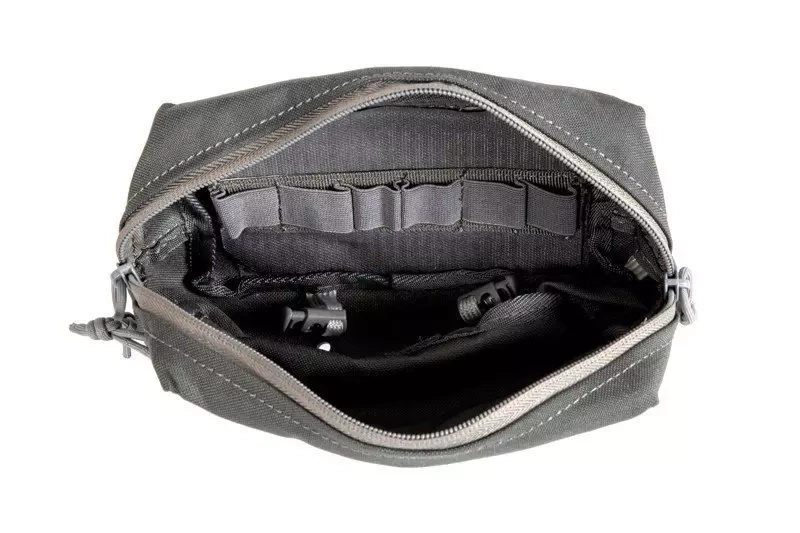 Kieszeń posiada panel mocujący z rzepem, dzięki któremu można ją przymocować do kamizelek taktycznych chest rig / plate carrier. Dolna kieszeń może służyć do przenoszenia dodatkowych akcesoriów, bez konieczności noszenia osobnej torby biodrowej / nerki.
