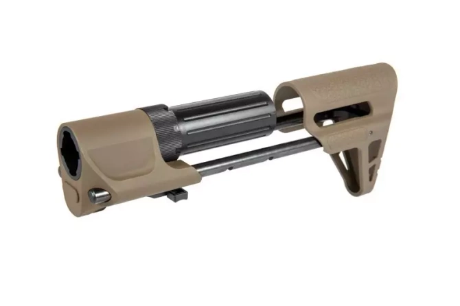 Kolba posiada podwójną blokadę, która uniemożliwia przypadkowe wysunięcie kolby z korpusu. Do odkręcanej atrapy buffer tube można zmieścić akumulator LiPo o wymiarach maksymalnych 15x11x115mm. Przykładowy akumulator:
