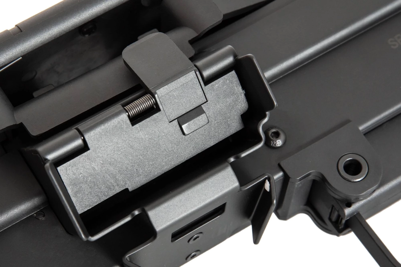 Zastosowany w karabinie system szybkiej wymiany sprężyny ESA™ pozwala na szybkie i sprawne dostosowanie mocy repliki do warunków spodziewanych na polu rozgrywki bez konieczności posiadania dostępu do warsztatu czy szeregu specjalistycznych narzędzi. Sam proces wymiany sprężyny głównej trwa dosłownie kilka sekund - wystarczy zdemontować jeden pin, odchylić zawias kolby oraz wyjąć prowadnicę wraz ze sprężyną przez otwór w szkielecie gearboxa.