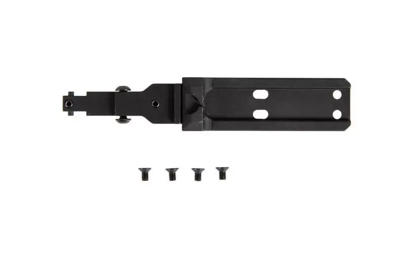 Wykonany z lekkiego aluminium montaż na kolimatory Aimpoint przeznaczony do montażu w replikach AK. Montaż montuje się w miejscu szczerbinki repliki i zabezpiecza dołączonymi w zestawie śrubami.