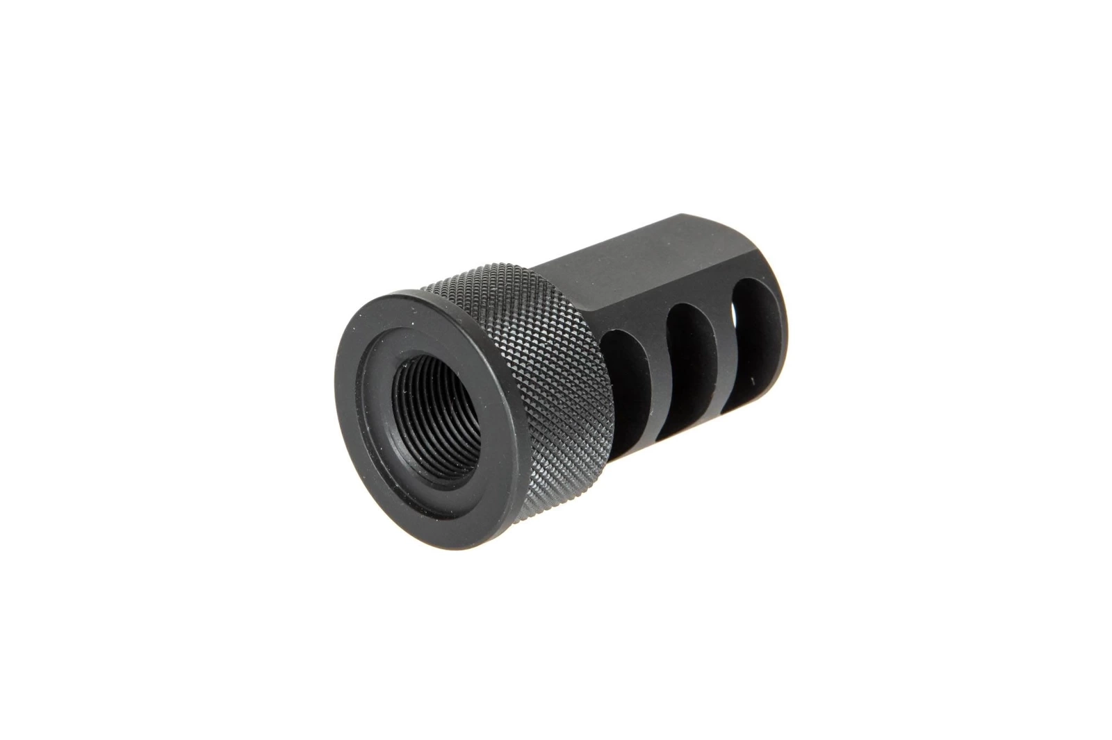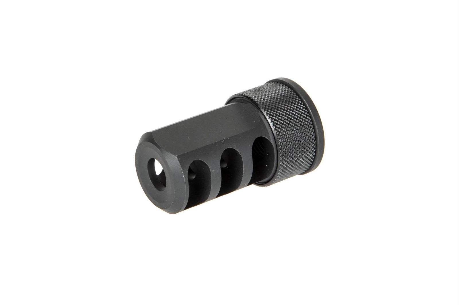 Wykonany z metalu tłumik płomieni o długości 45mm dedykowany do replik SRS A2 i innych, wyposażonych w gwint 14mm CCW. Tłumik .338 A2 kompatybilny jest z tłumikami DTSS gdyż posiada zewnętrzny gwint 24mm CW.