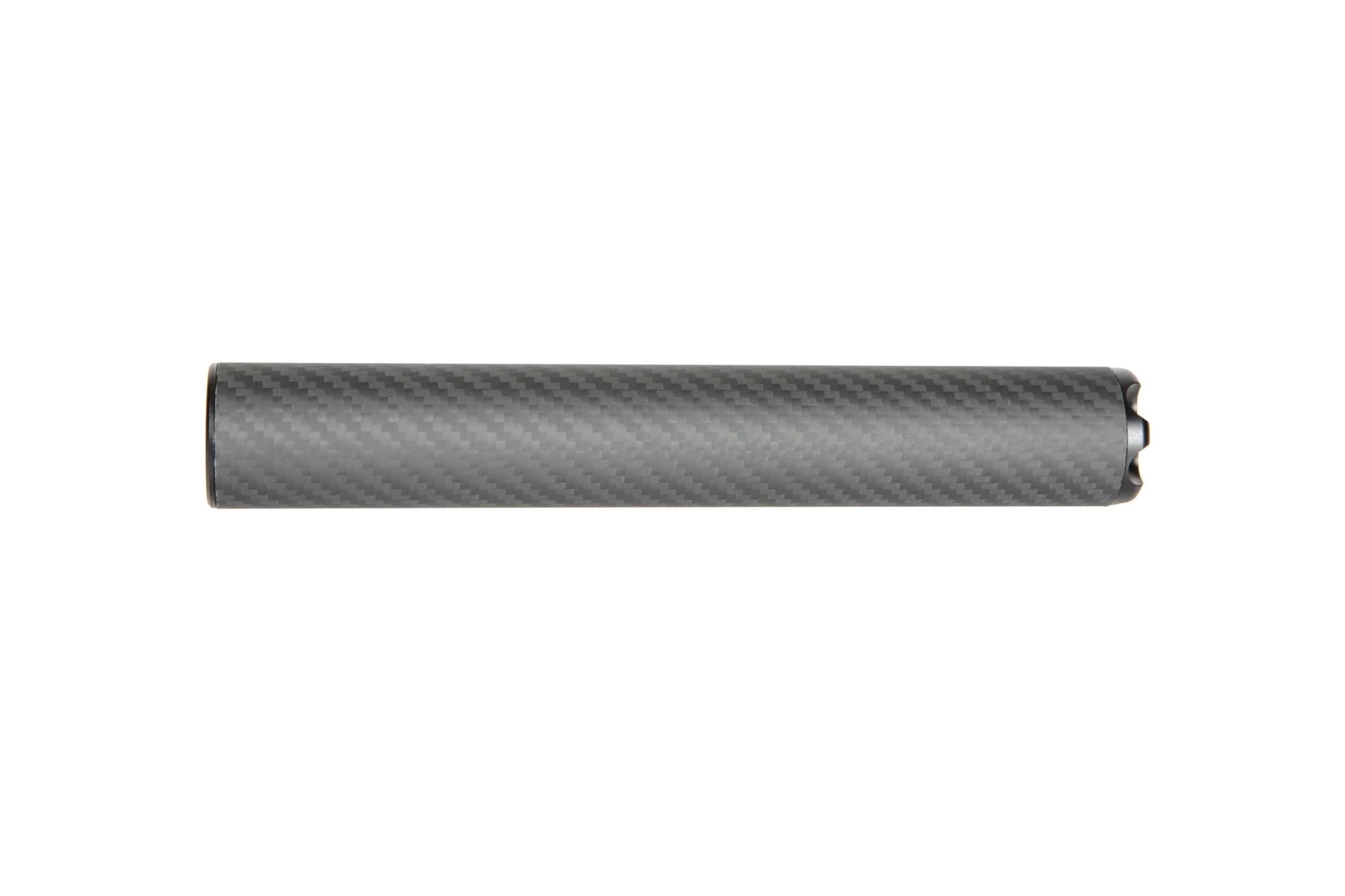Wykonany z włókna węglowego lekki atrapa tłumika do replik SRS. Tłumik posiada gwint 24mm CW.