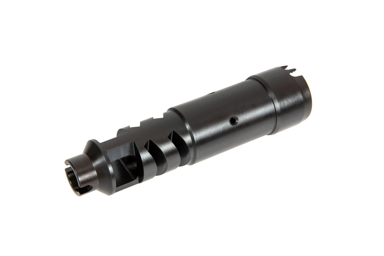 Stalowy tłumik płomienia dedykowany do replik rosyjskiego karabinka AK74 / AK105 i podobnych. Tłumik posiada gwint prawoskrętny 24mm, powszechny w replikach AK dostępnych na rynku.