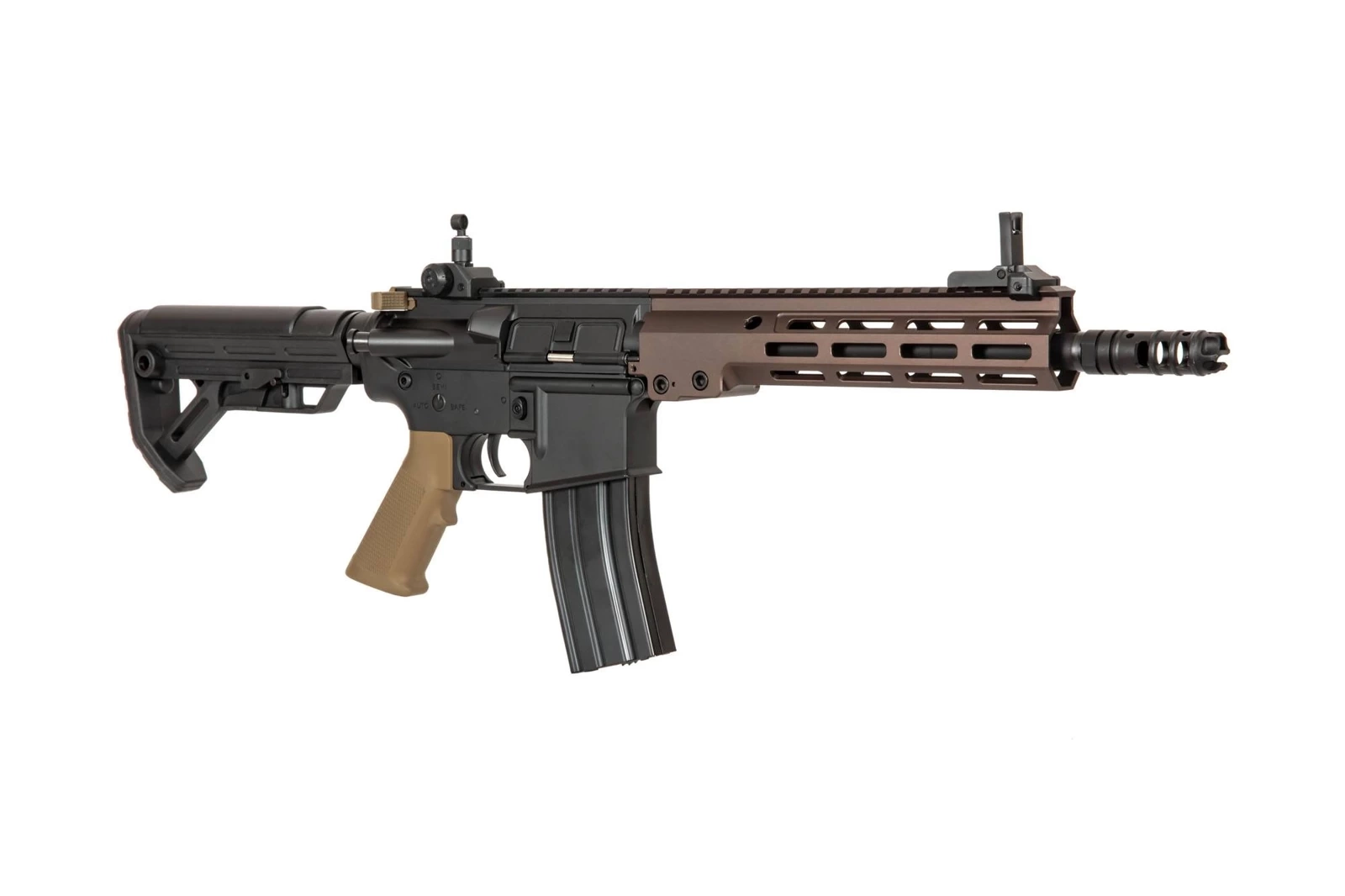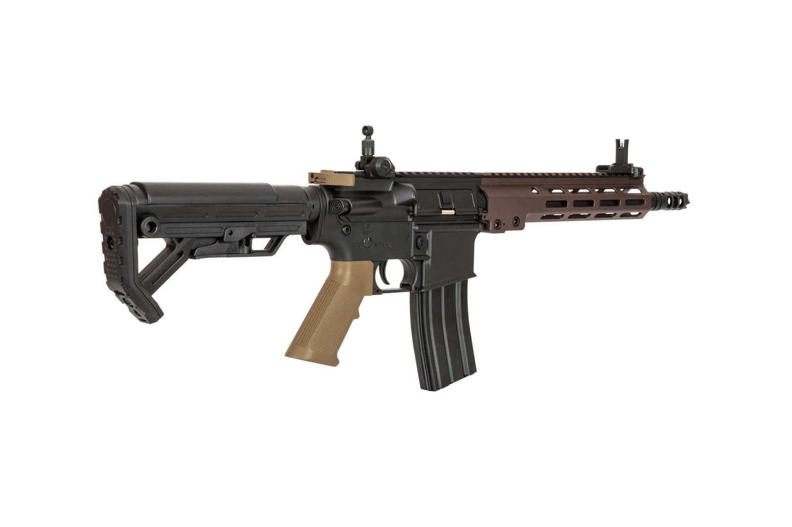 Replikę napędza wytrzymały, metalowy gearbox V2 wyposażony w MOSFET oraz spust z mikrostykiem. Dzięki szeregowi szyn montażowych mamy możliwość spersonalizowania karabinka o dodatkowe akcesoria taktyczne takie jak celowniki, chwyty czy latarki. Miejsce na akumulator typu stick znajduje się wewnątrz prowadnicy kolby.