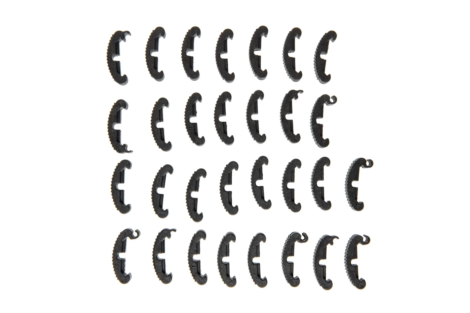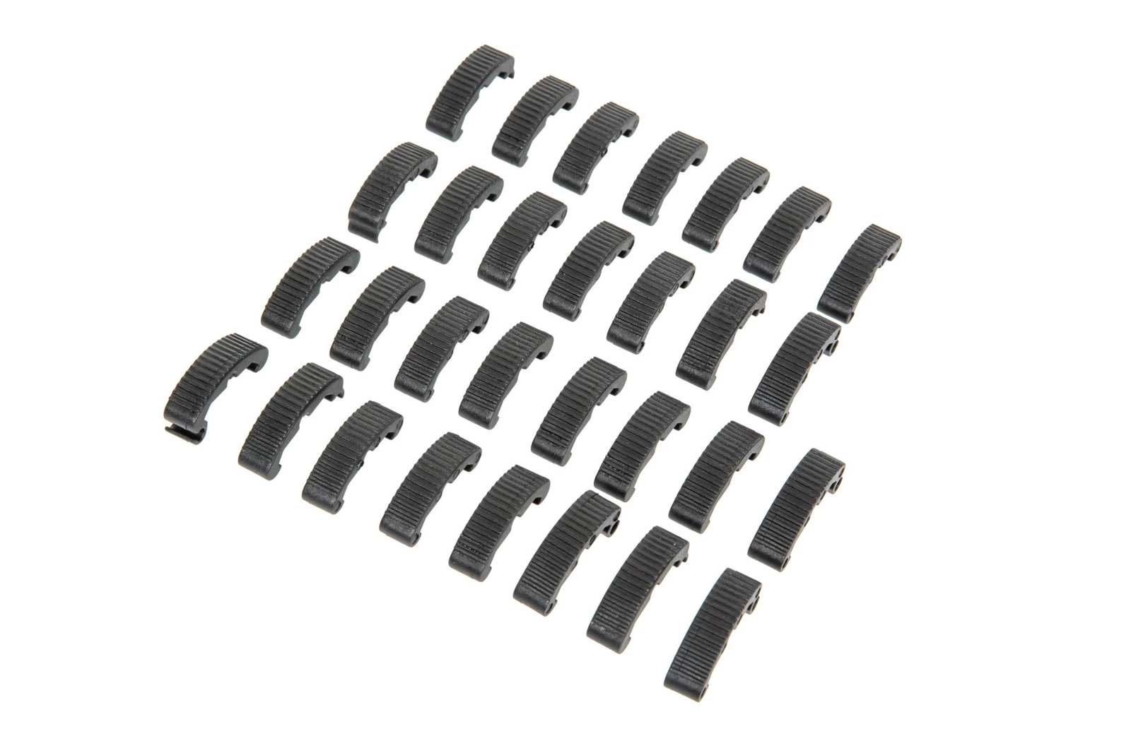 Zestaw 30 klipsów na szyny RIS, przeznaczonych do zamocowania w żłobieniach pomiędzy punktami mocowania. Wykonane z tworzywa sztucznego. Zamontowane na szynie RIS służą za osłonę przed ewentualnymi uszkodzeniami szyn, jak również chronią dłoń strzelca przed stycznością z ostrymi krawędziami szyn. Część z osłon posiada specjalną konstrukcję pozwalającą na organizację i regulację przewodów włączników chwilowych.