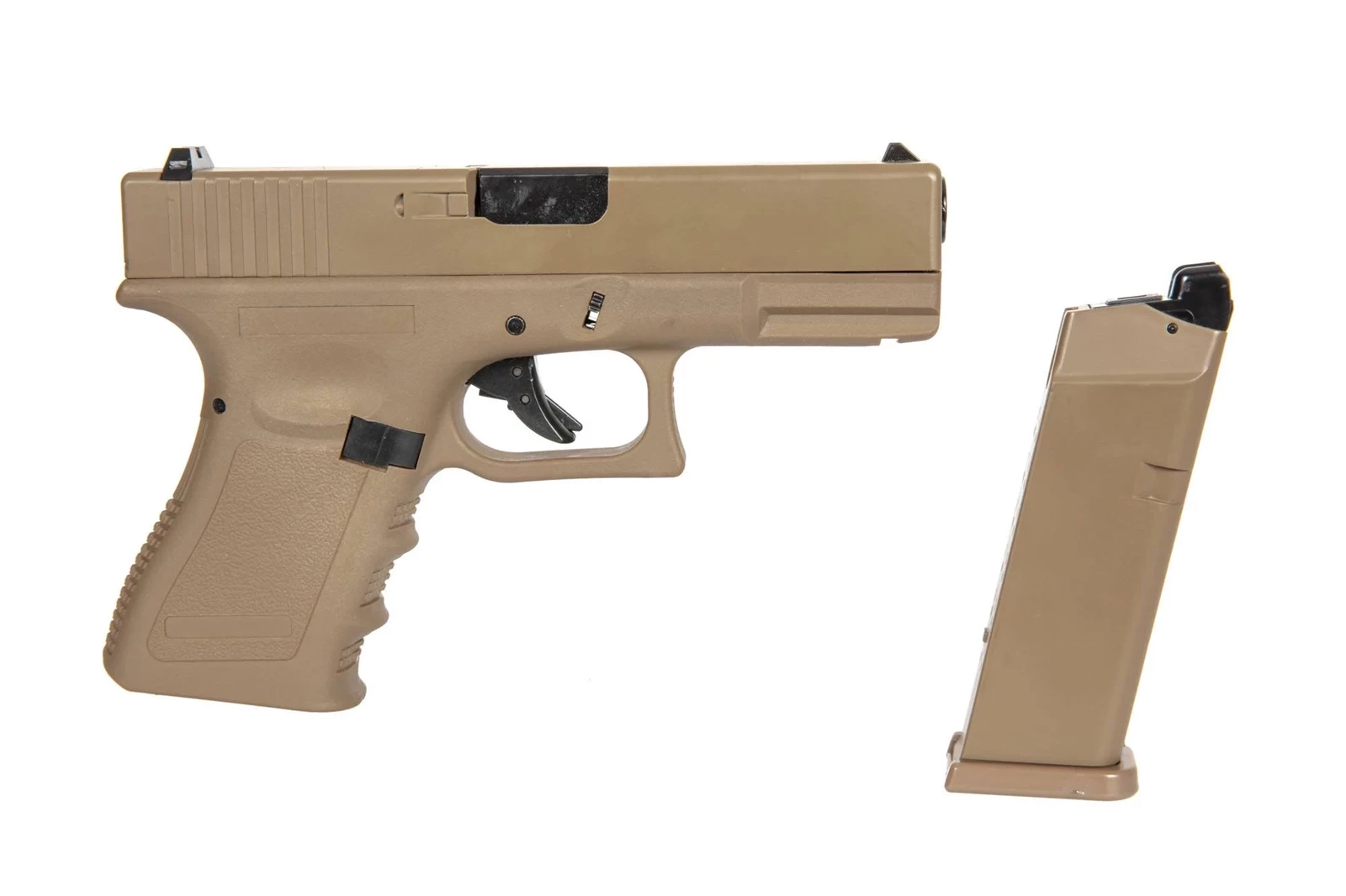 Replika pistoletu o napędzie gazowym produkcji firmy East & Crane. Replika została wykonana z metalu oraz wysokiej jakości tworzywa sztucznego. Z tworzywa sztucznego wykonano wygodny chwyt pistoletowy, szkielet repliki oraz drobne wewnętrzne i zewnętrzne elementy. Z metalu wykonano zaś zamek i magazynek mieszczący 20 kulek.