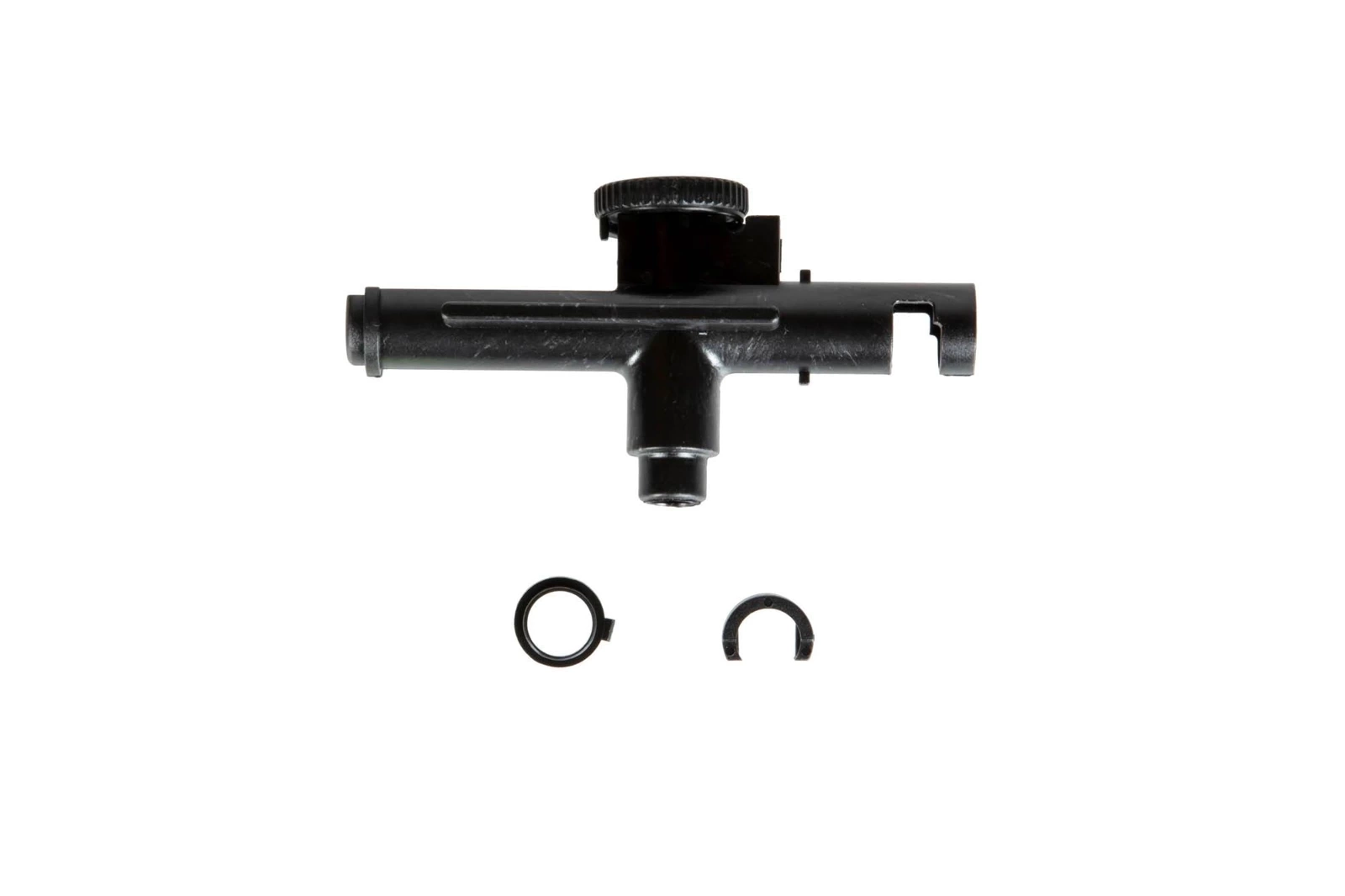 Zestaw hop-up do replik karabinka szturmowego produkcji ARES, składający się z polimerowej, rotacyjnej komory HU oraz gumki.