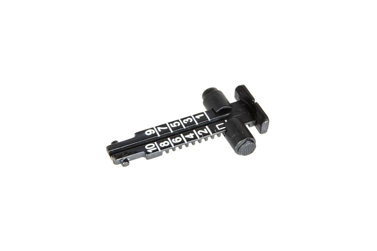 Wykonana z metalu szczerbinka wyskalowana do 1000 metrów, przeznaczona do replik karabinków AK produkcji Double Bell oraz podobnych.